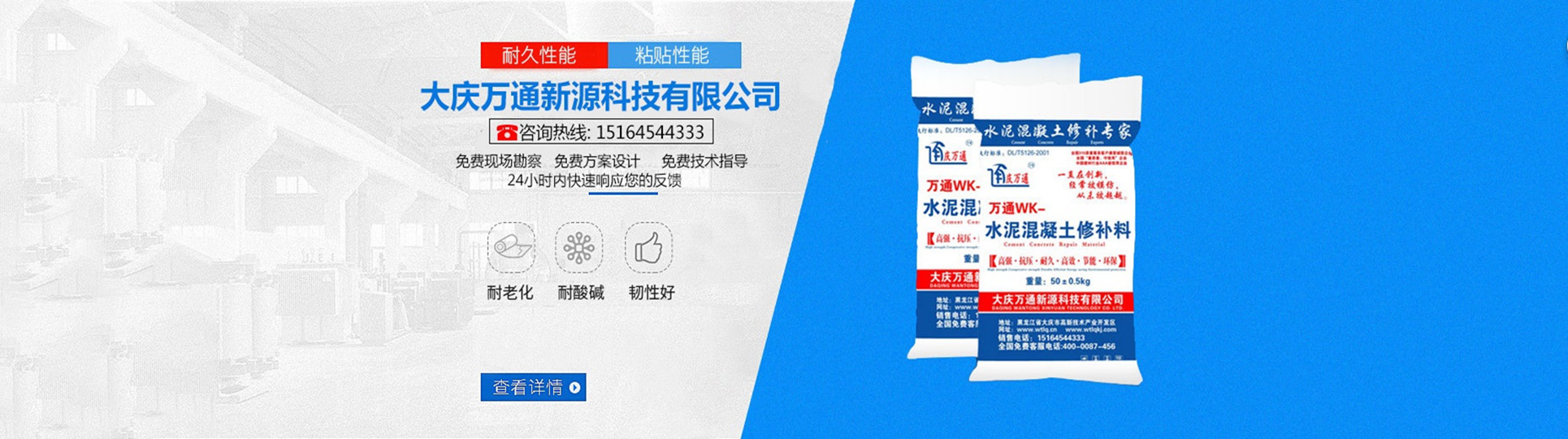 大慶萬通新源科技有限公司,是專業(yè)的"道路材料與養(yǎng)護方案集成商",是中國“專業(yè)水泥混凝土修補料材料供應商”,專注于高科技筑路新材料和道路養(yǎng)護新材料的研發(fā)、推廣、服務工作。公司可以提供系統解決水泥混凝土路面的麻面、空鼓、起皮、起砂、脫殼、露筋、掉皮、露石子、凍融、起粉、露骨、脫皮、鹽腐等病害的專業(yè)化公司。公司產品現已廣泛應用于公路、鐵路、水利、高速、國道、省道、縣鄉道路、市政、軍事等工程領域中,公司精干的服務隊伍和技術人員,可為工程施工提供有力的技術指導科學系統的解決方案。公司將不斷進行新材料、技術的研發(fā)和實踐,并聯合同行業(yè)的先進技術,發(fā)展成為公路建設和養(yǎng)護行業(yè)中,集材料、技 術、服務和方案集成化的專業(yè)機構,為提高公路建設質量、降低建設和養(yǎng)護成本提供更先進的材料、技術和方案。 公司先進的產品:直 接涂抹在病害部位即可,有好的抗壓抗折和粘接強度 ,可實現修補,和簡便的施工方法。在高速和高壓的行車狀態(tài)下不會出現破碎和脫落現象;修補后如新路面,不脫落不干縮開裂 。還具有好的抗凍、耐寒、防水、耐腐蝕和超長耐久性及抗紫外線特點。凡是水泥混凝土表面病害均適用于本材料。 萬通修補料具有: 使用壽命:較快的硬化速度和較高的早期強度,而后期強度無衰減,反而不斷上升,避免重載車輛通行碾壓造成局部路面二次破損。 抗壓能力:在高速和高壓的行車狀態(tài)下不會出現破碎和脫落現象,延長2倍的使用壽命 耐磨強度:后期強度不衰減、粘接強度大等因素使然,有很強的耐久性,對病害基本是一次性修補確保足夠的磨耗時間,避免修補周期太短。 粘接能力:同舊混凝土有較好的粘接結合強度,可以隨原路面一起伸縮、移動,從而避免了粘結失效和產生新破損。 實用性能:施工方便,無需開挖,節(jié)省了大量的施工費和材料費,延緩了道路病害的擴散和蔓延,延長了道路使用壽命。實現薄層修補,修補方法方便,快速,24小時快速通行,避免交通擁堵。節(jié)約成本,縮短工期解決了交通擁堵,延長2倍的使用壽命! 防水抗凍耐寒:有較強的水穩(wěn)定性和凍穩(wěn)定性可在-60℃—+60℃環(huán)境下不改變性能,適合各種氣候條件、水文條件和施工條件的地區使用。 熱脹冷縮系數一致:確保冷熱循環(huán)時與原來混凝土路面產生一致的不變化,防止熱脹冷縮系數不一致而造成粘結不牢,脫落,強度降低等。 適應氣候能力:萬通修補料適應于各種氣候條件,萬通立足北方高寒地區所以特別針對高寒地區 與高熱地區溫差變化大的氣候對材料的穩(wěn)定性的影響有著多年研究和施工經驗。 耐酸鹽腐蝕:抗紫外線耐酸堿耐融雪劑的腐蝕。 美觀度:與舊混凝土有較好的相容性,萬通修補料與原水泥混凝土路面顏色接近,可根據原路面顏色調整材料顏色,達到好的顏色相容性,修補后有較好的美觀度。 水泥路面修補料、混凝土路面修補料、道路修補料,機場跑到修補,高速公路收費站修補,河道面修補,國道修補,鄉道修補。水泥地面起砂修補料、混凝土地面起砂修補料、水泥地面修補料、道路面層起砂修補料、水泥路面修補膠、水泥路面修補劑、混凝土路面修補膠、混凝土路面修補劑、道路修補膠、道路修補劑、水泥路面修補砂漿、混凝土路面,修補砂漿、道路修補砂漿。混凝土路面修補,水泥地面起砂處理劑,水泥地面起皮怎么辦,聚合物修補砂漿,修補混凝土路面,混凝土路面起砂修補,混凝土修補劑,水泥路面修補,水泥混凝土修補料,萬通水泥地面起砂怎么處理,混凝土表面缺陷修補材料,水泥地面起砂處理,混凝土路面修補,水泥地面起灰怎么辦,混凝土地面修補 ,水泥路表面大量起砂破損處理,水泥地面起砂怎么辦,修補混凝土,?萬通混凝土路面修補料,地面找平,地面起砂處理 ,地面起砂處理劑,水泥路面修補料,混凝土修補,混凝土路面起砂修補,萬通水泥地面硬化劑,混凝土露筋處理方案,混凝土路面薄層修補技術,水泥路面不平怎樣修補,混凝土缺陷修聚合物修補砂漿、水泥地面起砂的原因,張掖混凝土路面修補,水泥地面起砂怎么處理 ,混凝土修補方案,混泥土地面起沙,水泥地面地面返沙,水泥地起砂小竅門,修補混凝土用什么材料,小區單元門口路面修補,打水泥地面摻什么好看,水泥混凝土修補料,水泥路面損壞,混凝土蜂窩麻面修補,路面磨上水泥若起皮怎么辦,水泥路表面大量起砂破損處理,水泥地面起沙嚴重怎么辦,水泥地面不平怎么辦,水泥面起沙怎么辦,混凝土露筋修補方案,水泥地面處理方法,萬通水泥地起砂處理方法,水泥路面修補材料,水泥路修補價格,混凝土起砂怎么補救,混凝土地面強度時間表,水泥地拋沙怎么辦、地面起砂怎么處理,水泥地面起灰簡單辦法,地平起沙怎么辦,家里地面起沙,萬通蘭州混凝土路面修補、水泥路面快速修補料、水泥地面起砂處理劑,地面起皮的原因,混凝土起砂處理劑貴陽,水泥路起沙子怎么處理、路面修補料、地面處理,水泥路面起皮起沙修補料,混凝土路面起皮起沙修補料,水泥混凝土路面修補,道路快速修補材料,水泥路面修補料,水泥路面修補料,混凝土路面破損修補,混凝土路面起沙修補料,水泥路面起沙修補料,水泥路面破損修補,水泥路修補劑,混凝土路面起砂修補,水泥混凝土路面破損怎么修